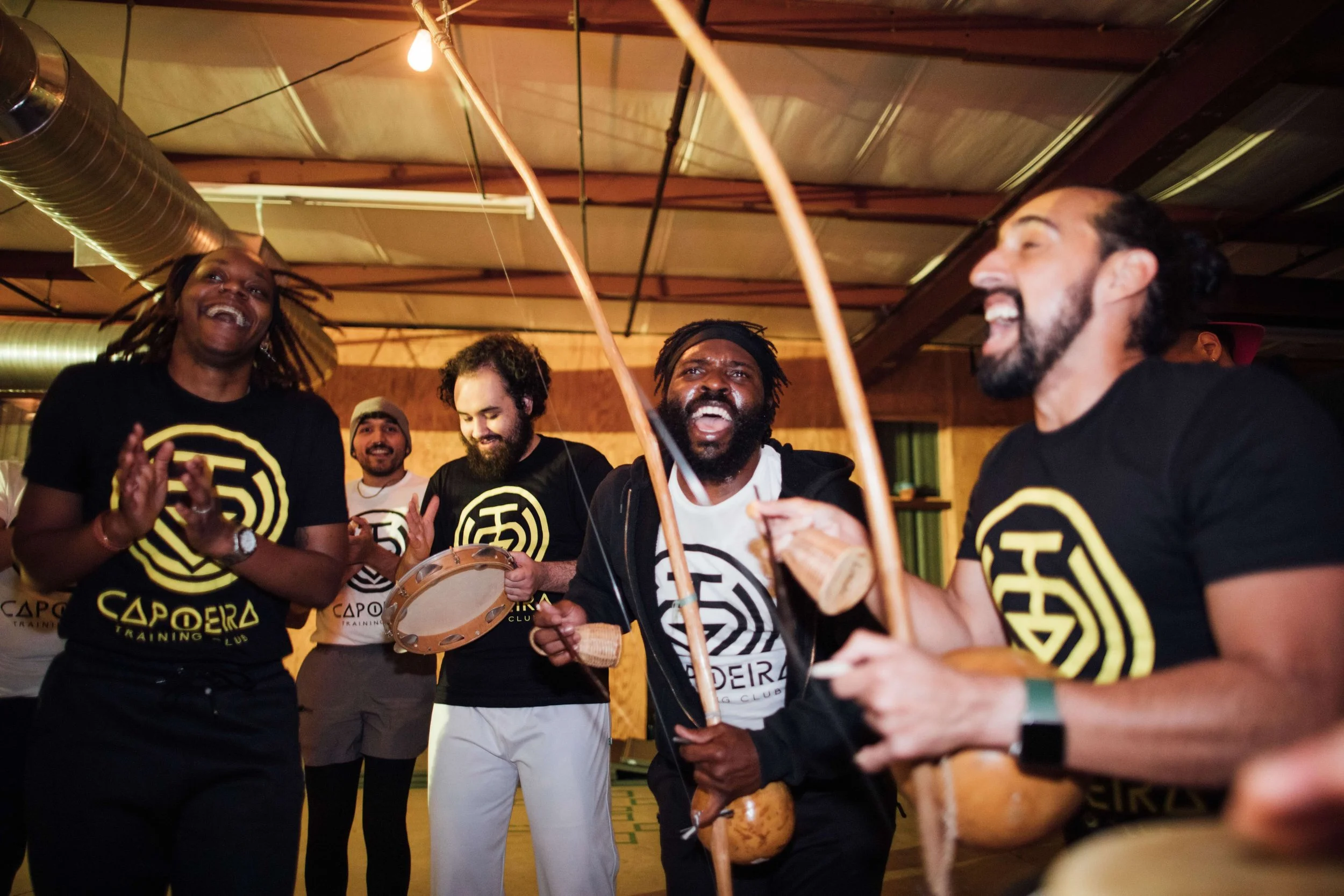 Live music practice (berimbau, pandeiro, drumming, singing)